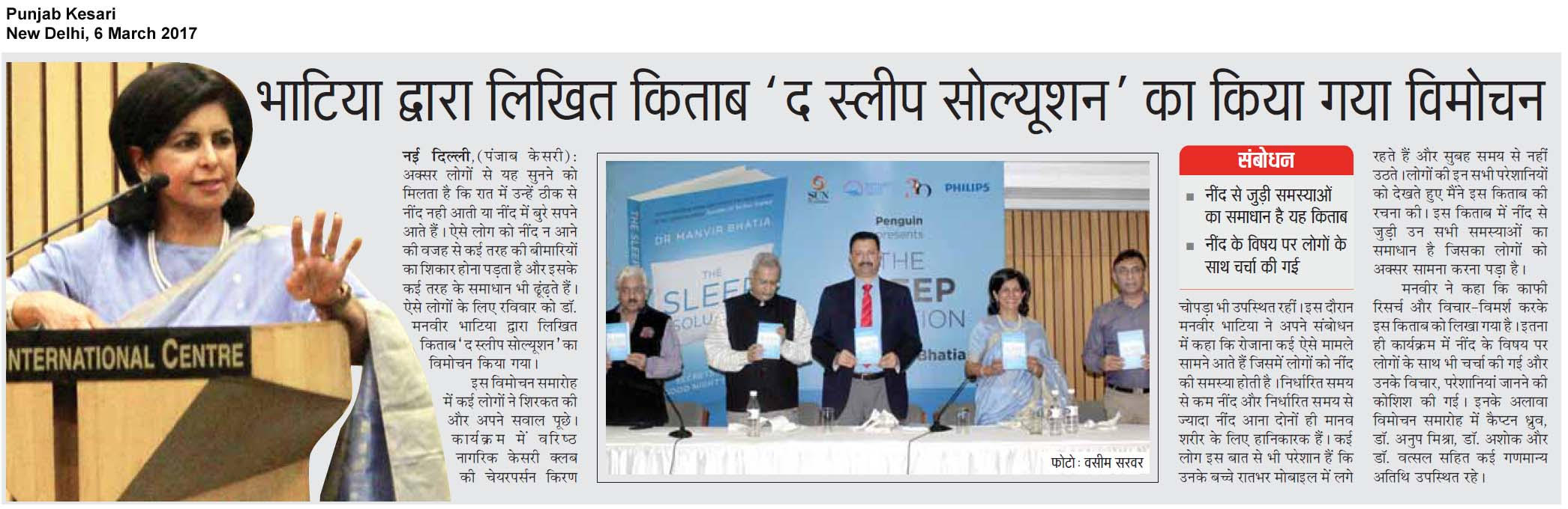 The Sleep Solution by Dr. Manvir Bhatia on 5th March 2017, Delhi in Punjab Kesari